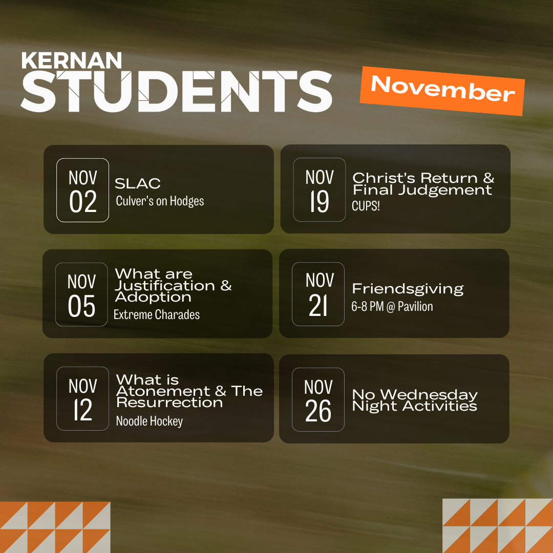 Our students meet upstairs in the main building. The entrance is across from the preschool hall in the main hallway. Look for the black wall with the "Kernan Students" sign.